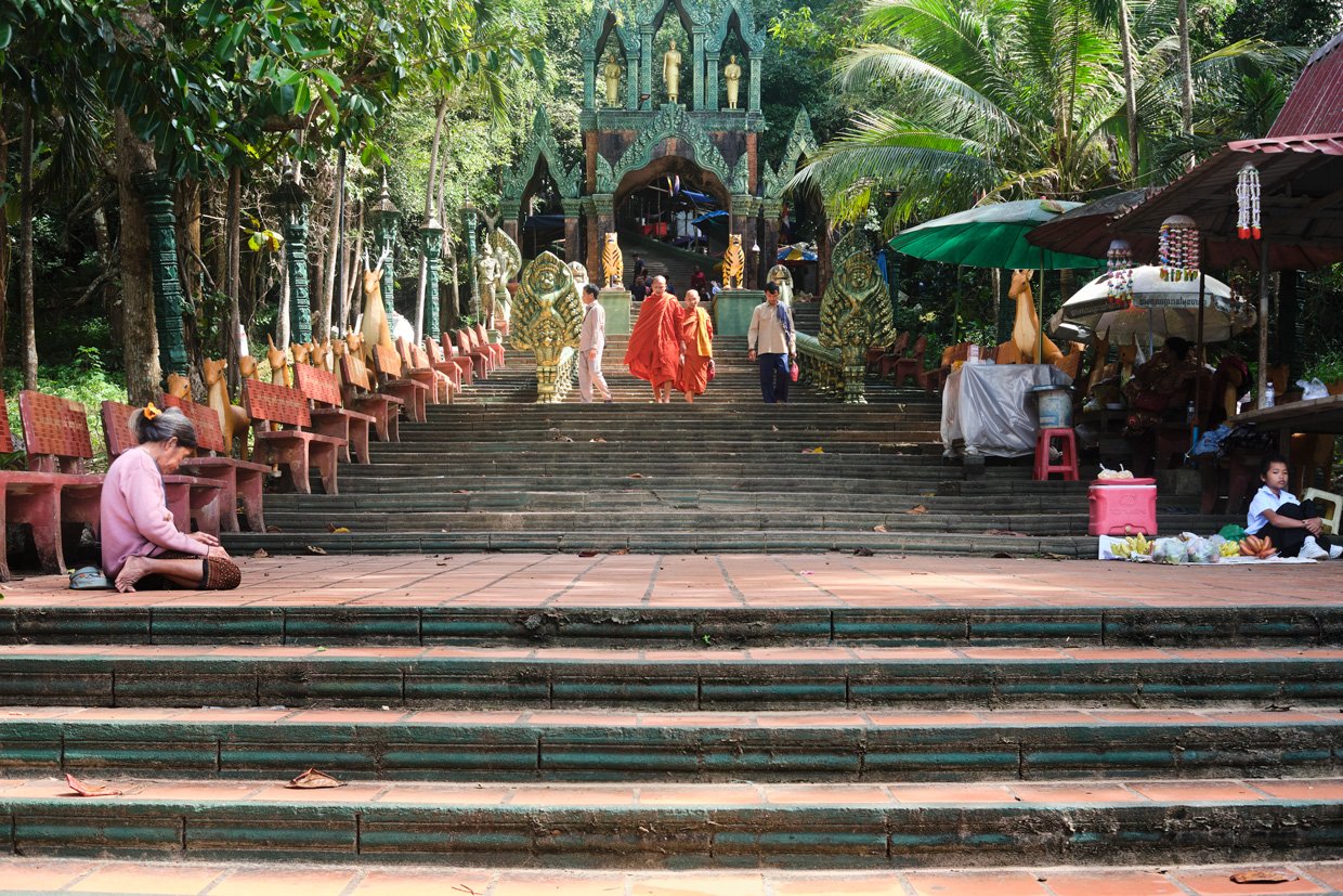 Consider giving a few small Cambodian notes to the older widows near the stairs; their grateful smile is meaningful.